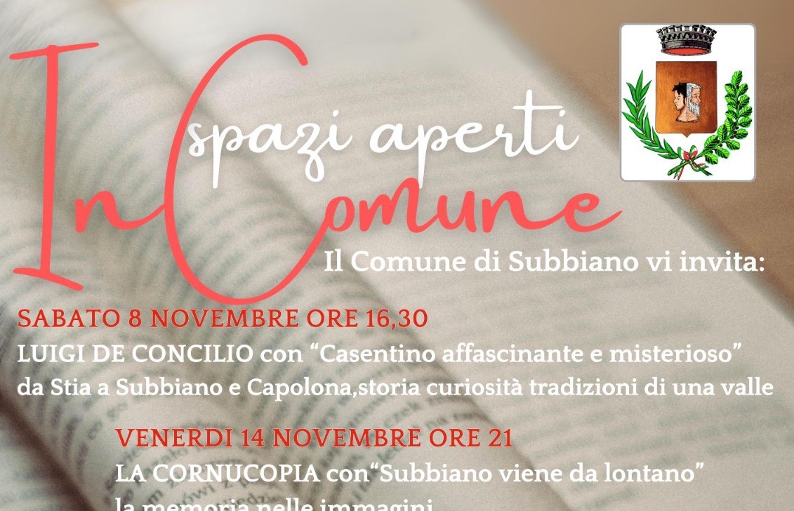 Il Comune di Subbiano vi invita alla rassegna "In Comune, Spazi Aperti" con incontri e presentazioni di libri da Novembre a Dicembre.